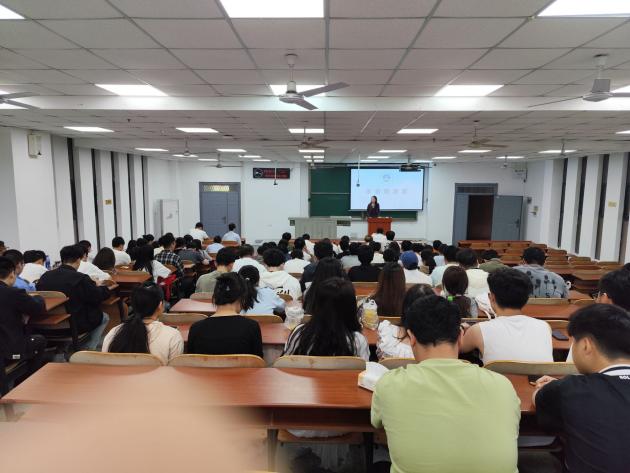 研究生辅导员李蓓蕾围绕研究生日常管理、奖助评优、党员发展、心理健康及安全教育等方面作了详细讲解。她结合典型案例,重点强调了防范电信网络诈骗的重要性,提醒同学们提高警惕、增强防范意识。她指出,研究生阶段是人生的重要转折点,希望同学们以积极心态面对科研压力,合理规划学习生活,保持身心健康,让三年时光充实而有意义。