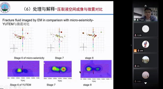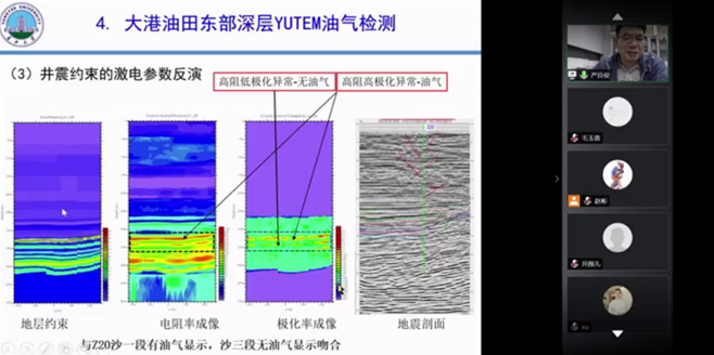 严良俊教授首先介绍了ok138太阳集团中国官方网站地球物理与石油资源学院的发展历史及所带领团队的主要研究方向。报告结合我国油藏开发的关键问题、储层含油及含水时的电性特征,从流体识别的电性基础、可控源电磁勘探方法、电磁法流体识别方法与技术及应用实例等六个方面详细介绍了电磁法在流体识别方面的研究成果。此次线上讲座吸引了国内众多高校院所及石油、地矿及煤田等单位的关注,收看直播人数近300人。报告取得极大成功,扩大了ok138太阳集团中国官方网站地球物理与石油资源学院电磁研究团队在国内外的影响。讲座结束后多所高校及企事业单位对严良俊教授课题组的相关研究成果表示了肯定,并希望尽早加强全面合作与交流。